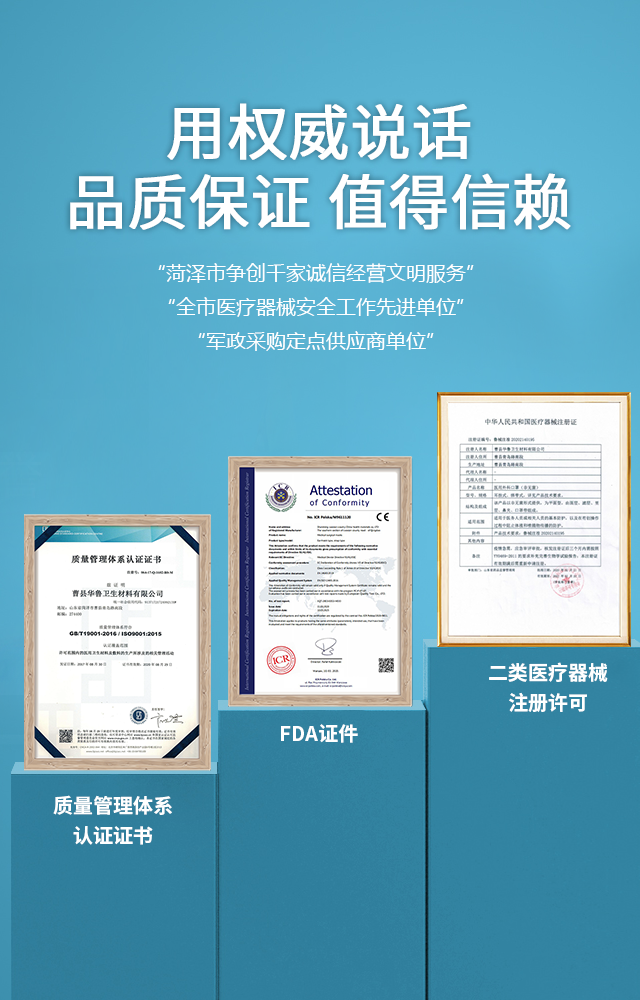 曹县华鲁卫生材料有限公司主营医用纱布,医用口罩,医用棉签,脱脂棉,脱脂棉球,医用耗材等生产厂家,公司位于“牡丹之乡”菏泽市,是集医用卫生材料,棉花深加工于一体的综合性,现代化中型企业,是国家较早的医用产品加工企业之一.